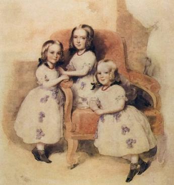 Леони, Матильда и Берта Дантес-Геккерн. Акварель Леопольда Фишера. 1843