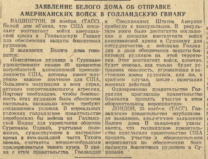 Кстати, нидерландские (из Гвианы) бокситы обеспечивали в годы войны свыше 40% выплавки поставляемых в СССР по ленд-лизу алюминия и его сплавов (всего поставлено 330 тыс. тонн за сентябрь 1941 г. – сентябрь 1945 г.); около трети объема ленд-лизовских нефтепродуктов поставлялось в СССР с нефтеперерабатывающих заводов с нидерландских южнокарибских Арубы-Кюрасао.