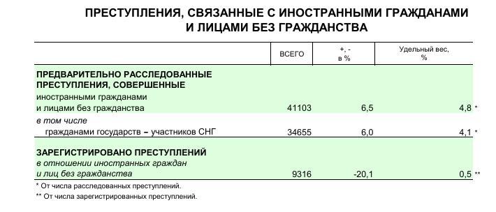 Принимая, условно, что доля преступлений иностранных граждан в числе нерасследованных преступлений, тоже 4,8%, получим, что не менее 40,0 тыс. в них могли совершить иностранные граждане (возможно и больше, учитывая повышенную сложность в раскрытии преступлений с участием иностранцев). Тогда реальное количество преступлений иностранных граждан предположительно составит 81,1 тыс.