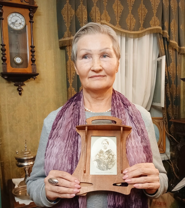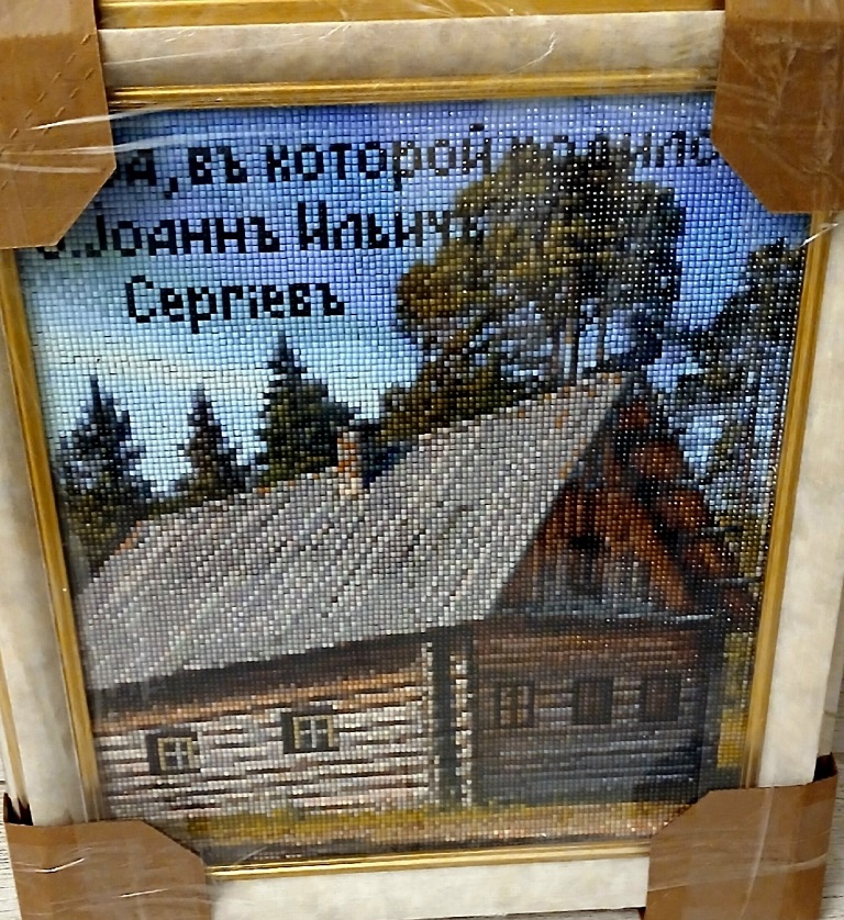 А этой зимой она пожелала изготовить портрет своей прапрапрабабушки – Феодоры Власьевны, а также вид избы в Суре, в которой родился и вырос св.Иоанн Кронштадтский. Для изображения Феодоры Власьевны она взяла за основу как раз тот самый глубокий портрет, который написал художник Анатолий Набатов. А для изображения избы использовала старые фотографии Суры.