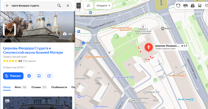 Есть в Москве, у Никитских ворот, удивительный храм. Во имя преподобного Феодора Студита. Скромный, белокаменный, уютный. Идёшь по Большой Никитской мимо шумных машин, сворачиваешь в Мерзляковский переулок — и словно в другую эпоху попадаешь. Тишина. Птицы поют. Стены помнят.