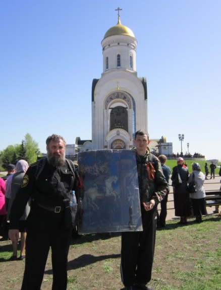 В мае 2015 года довелось принять участие в крестном ходе «По полям боевой славы». Движение начали 6-го мая, от церкви Георгия Победоносца на Поклонной горе в Москве. В этот день, когда исполнилось 70 лет со дня Победы в ВОВ, была привезена десная рука св. Георгия Победоносца. Когда святыня, в сопровождении Патриарха Кирилла и сонма архиереев и священников вошла в воинский храм, крестный ход начал движение.