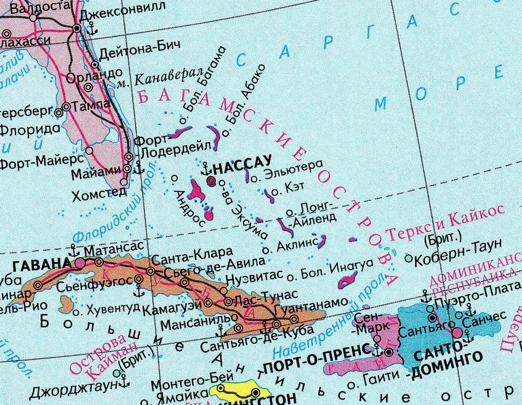 Кстати, с северо-востока Кубу – свыше 650 км – полностью «прикрывает» британский доминион: это обширные Багамские острова, до последнего времени дружественные Кубе, но на некоторых ближних к Кубе Багамских островах – военные базы США...