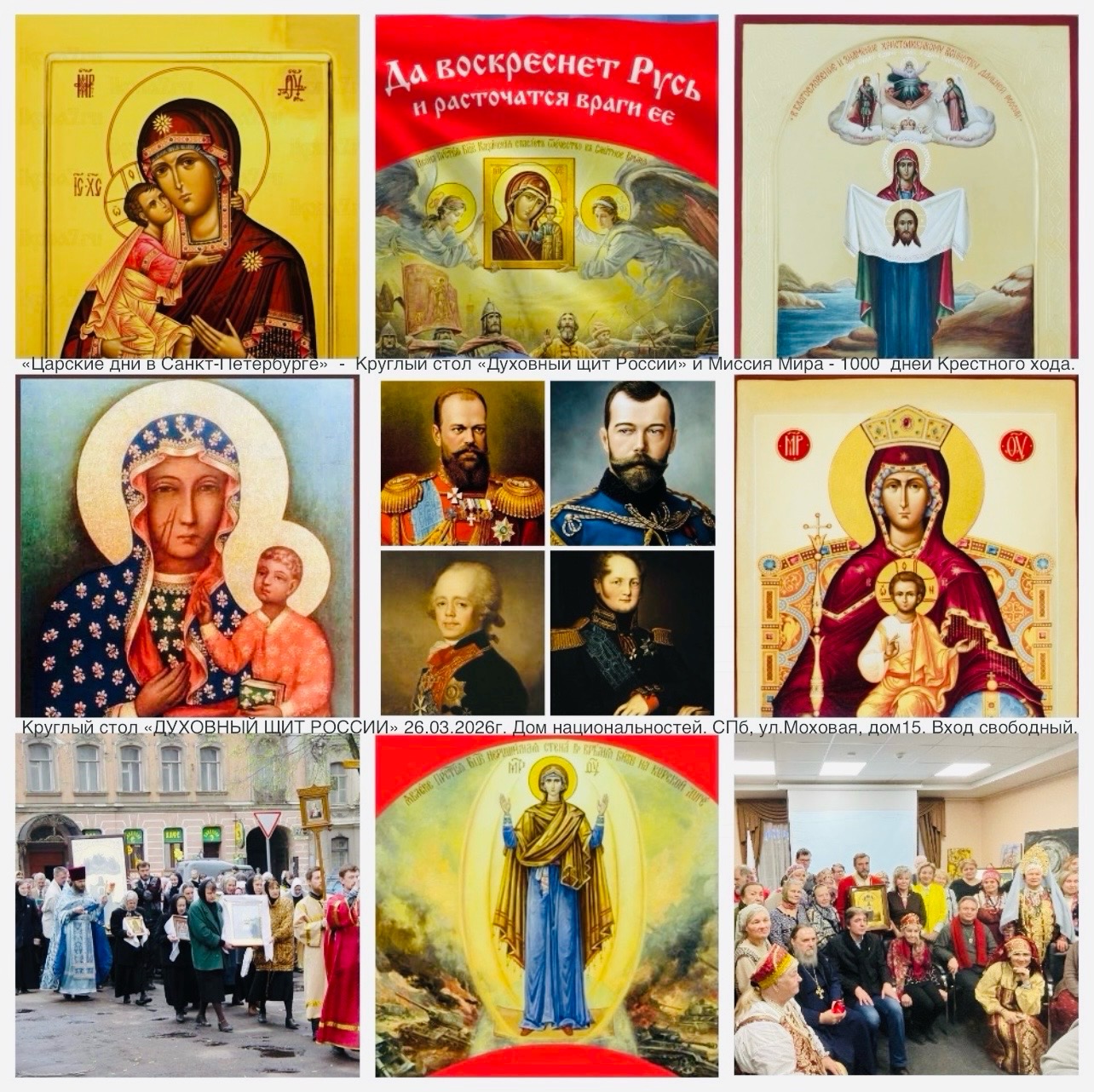 26 марта 2026 года, в канун празднования Феодоровской иконы Божией Матери – покровительницы Дома Романовых, в 14.00 в Санкт-Петербургском Доме национальностей (ул. Моховая, дом 15) в рамках программы «Чтобы Россия оставалась Россией» и проекта «Царские дни в Санкт-Петербурге» пройдет круглый стол «Духовный щит России и Миссия Мира». Мероприятие посвящено 145-летию восшествия на престол Царя-миротворца Александра III в день убиения его отца Царя-освободителя Александра II и тысячедневному Крестному ходу программы «Миссия Мира» с походным списком Порт-Артурской иконы Божией Матери.