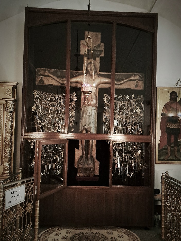 Но оказалось, что в самом основном храме служба совершается постоянно, а в приделе, где пребывает крест, Литургия тогда не служились, поскольку в течение всего дня ко кресту стояла нескончаемая очередь богомольцев, так что было невозможно отслужить Литургию при таком потоке паломников.