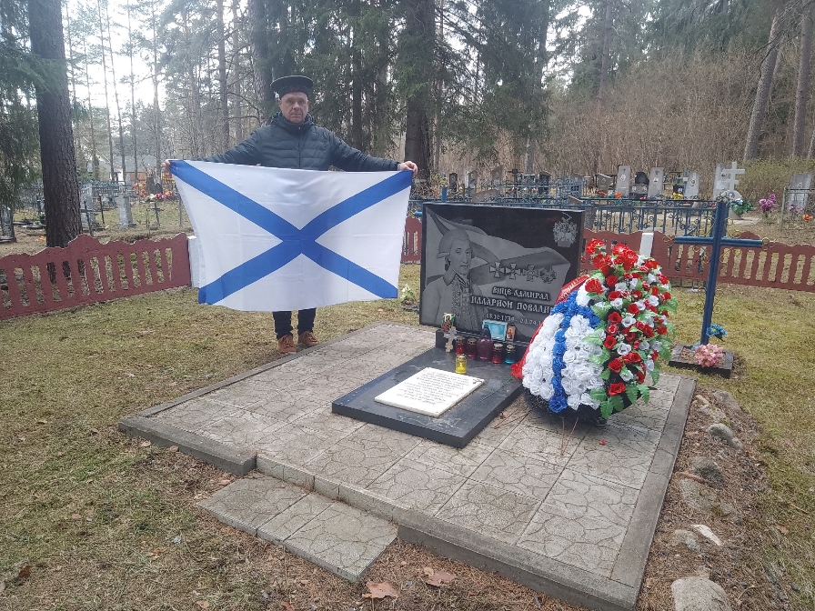 На месте захоронения я развернул знамя Военно-морского флота России – Андреевский флаг.