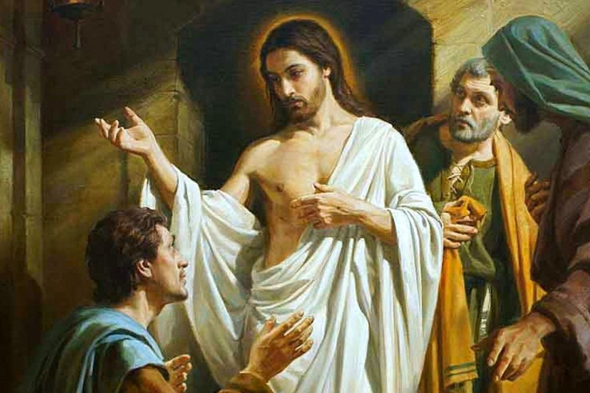 И вот наступает восьмой день. Ученики снова собраны вместе – на этот раз Фома с ними. И снова Христос приходит, проходя сквозь запертые двери. Но теперь Он обращается прямо к сомневающемуся ученику: «Подай перст твой сюда и посмотри руки Мои; подай руку твою и вложи в рёбра Мои; и не будь неверующим, но верующим» (Ин. 20:27).