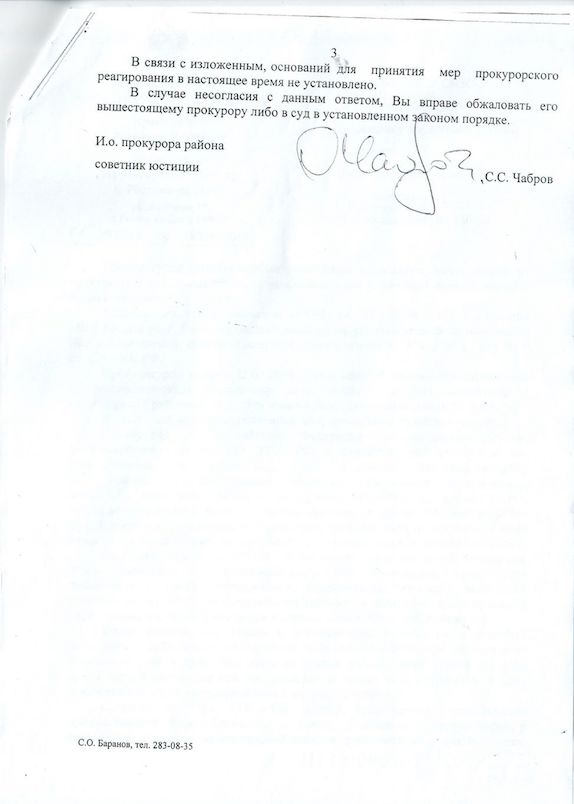 Что характерно, органы прокурорского надзора отказывались проводить проверки по этим фактам, явно противозаконным и требовавшим обязательного прокурорского реагирования.