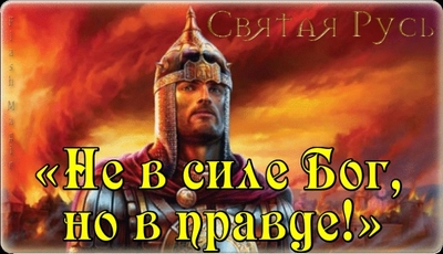 из книги с исторической реконструкцией жизни этого великого подвижника Православия и защитника Отечества с названием, ставшим афоризмом, прозвучавшим в свое время из уст святого благоверного князя Александра Невского: "НЕ В СИЛЕ БОГ, НО В ПРАВДЕ", см. по ссылке: http://www.a-nevsky.ru/library/aleksandr-nevskiy-zhiz.. Очень полезно и поучительно каждому из нас.