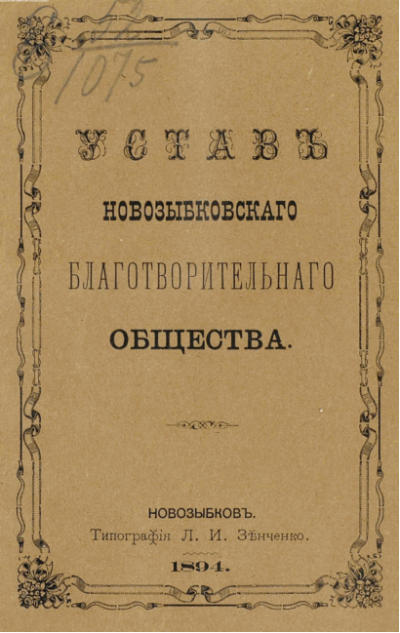 Действовало благотворительное общество и в городе Новозыбкове. Датой его основания следует считать 9 сентября (все даты в тексте указаны по старому стилю) 1893 года. Именно в этот день Управляющий Министерства Внутренних дел сенатор В.К. фон Плеве подписал устав общества, которое состояло в ведении названного Министерства.