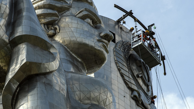 Демонтаж советского герба с монумента «Родина-мать». Источник: https://russian.rt.com/ussr/news/1182248-ukraina-demontazh-gerb-rodina-mat