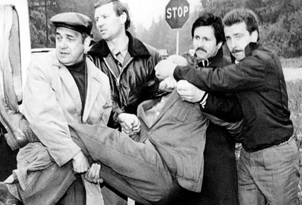 Задерживали шпиона бойцы «Альфы». Двое переоделись гаишниками. Один «остановил» грузовик и отчитывал на обочине водителя, а второй должен был указать жезлом жене Толкачева встать на обочине за грузовиком. В кузове были бойцы «Альфа».