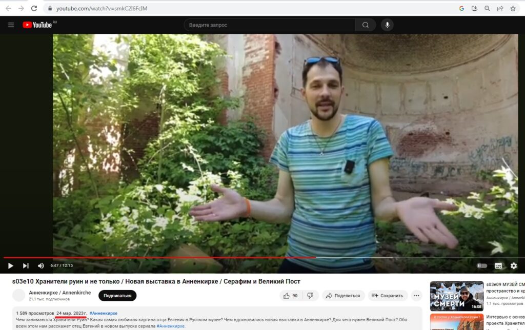 3. Размещение публикаций о волонтёрском движении «Хранители руин» на официальном сайте Церкви Ингрии и ютуб-канале Анненкирхе.