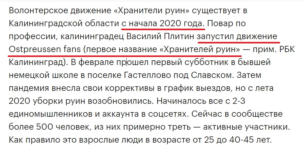 И волонтёрское германизаторское движение «Фанаты Восточной Пруссии» (позднее, ради получения мощнейшей поддержки из бюджета, вынужденно переименовавшееся в «Хранителей руин») в этой спецоперации играет одну из главных ролей.