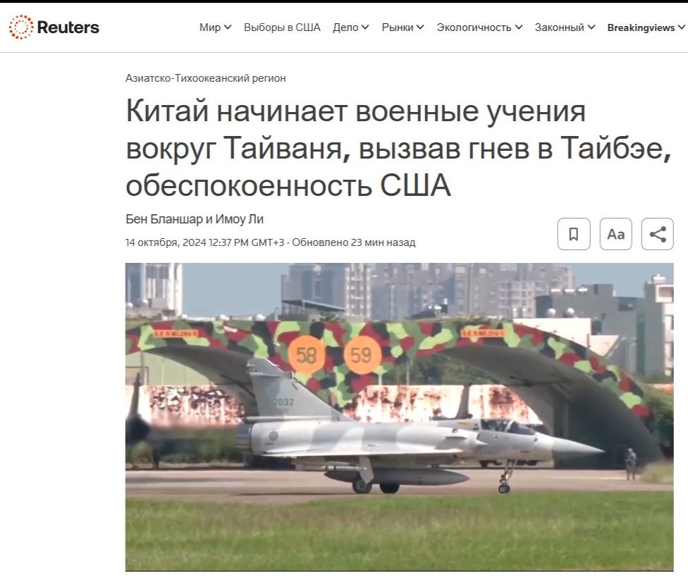 Восточное командование Вооруженных сил Китая заявило, что учения «Совместный меч – 2024» проходят в Тайваньском проливе и районах к северу, югу и востоку от Тайваня: «Учения также служат суровым предупреждением сепаратистским действиям Тайваня. Это законная и необходимая операция для защиты государственного суверенитета и национального единства».
