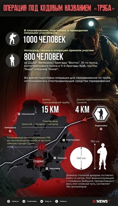 Газопровод пролёг из Большое Солдатское на Кубаткино – именно эта часть была выбрана для «Потока». Почти 16 км под землёй. Наверху – фашисты с танками, артой, бэтээрами, траншеями, блиндажами, «опорниками». Надо с математической точностью рассчитать точку выхода – не приведи Господи угодить в блиндаж или траншею. А потом надо бесшумно пройти, незаметно выйти и рассосредоточиться, заняв круговую оборону, превратившись в глаза и уши, пока не выберутся остальные, а потом веером нанести концентрированные удары, вспарывая оборону врага – на Зазулевку. Ивашковское, Мартыновку, Казачью Локню и Суджу.