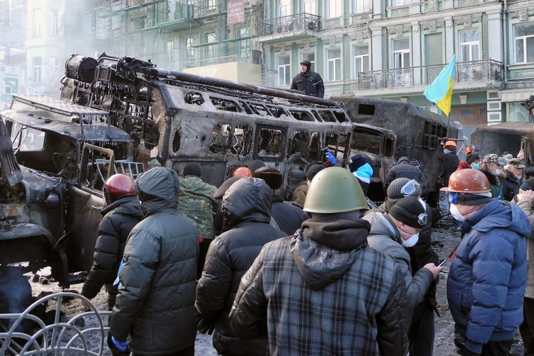 «Беркут» подошел уже к вечеру и пытался эвакуировать людей из горящего здания. Они прислонили леса, оставшиеся от сцены, и по ним спустились люди, стоящие на карнизах.