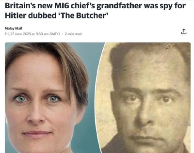 Знаете, что больше всего в этой истории поражает? Не сам факт того, что внучка нацистского преступника, кровавого убийцы и коллаборанта будет теперь руководить МИ-6 (тут как раз ничего необычного нет, не зря же британцы и американцы вывозили нациков в конце войны для последующего использования против СССР, те плодились и размножались, так что факт наличия их потомков и того, что они вполне возможно, а скорее всего, даже ожидаемо, сделали приличные карьеры на Западе, никого удивлять не должен). И даже не тот факт, что эта деталь её биографии людям из МИ-6 и МИ-5 давно и прекрасно известна, наверняка при отборе её на работу после окончания университета, её подноготная до седьмого колена была проверена.