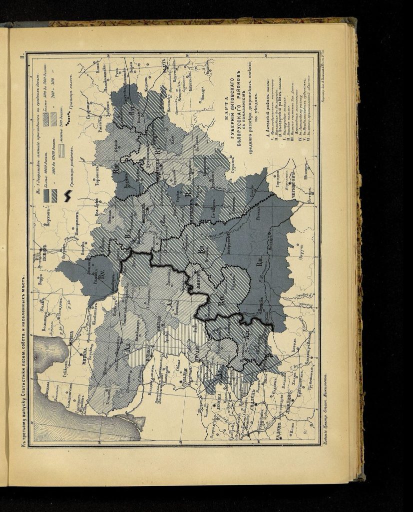 Карта губерний литовского и белорусского районов с показанием среднего размера дворянских имений по уездам