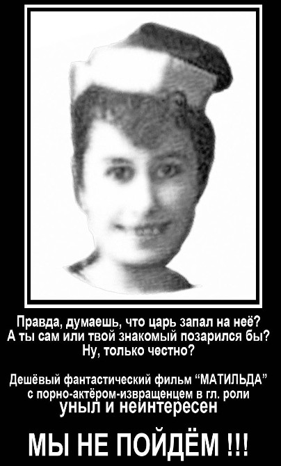 Дешевый фантастический фильм «Матильда» с порно-актером извращенцем в главной роли уныл и не интересен. Мы не пойдем!!!