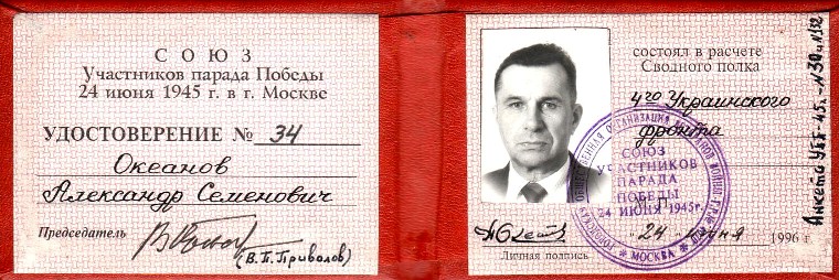 Выставка рассказывает об участнике Парада Победы, жителе Красногорского района Александре Семеновиче Океанове. Интернет-пользователи увидят снимки и оцифрованные документы из фондов филиала, узнают о судьбе фронтовика. Среди раритетов - китель, удостоверение участника Парада Победы, фотографии.