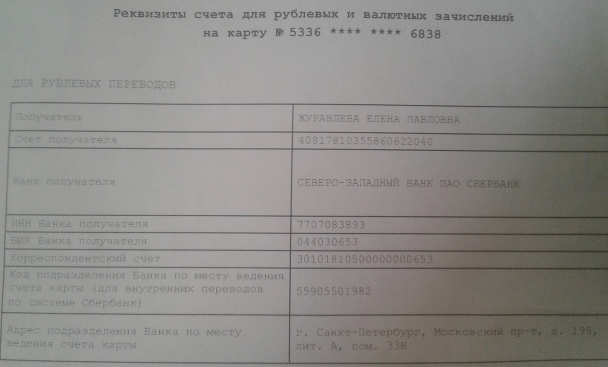 Карта Сбербанка: 5336 6901 6417 6838 Елена Павловна.