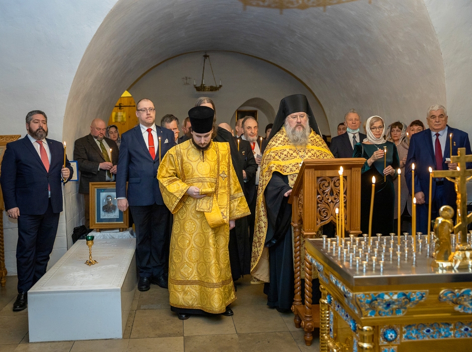 Литию по убиенному Благоверному Императору Александру Николаевичу и молебен по царскому чину совершил начальник Управления по историко-мемориальной деятельности Канцелярии Главы Российского Императорского Дома иеромонах Никон (Левачёв-Белавенец) в сослужении насельника обители иеродиакона Арсения (Писарева).