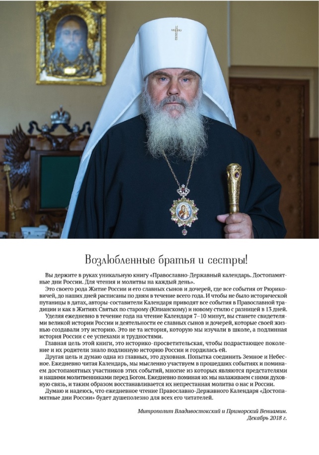 Руководитель православно-державного просветительского проекта «Достопамятные дни России» Игорь Александрович Чернозатонский на своей странице в социальной сети в ВКонтакте призвал приобретать православный державный календарь «Достопамятные дни России», выпущенный в рамках проекта.