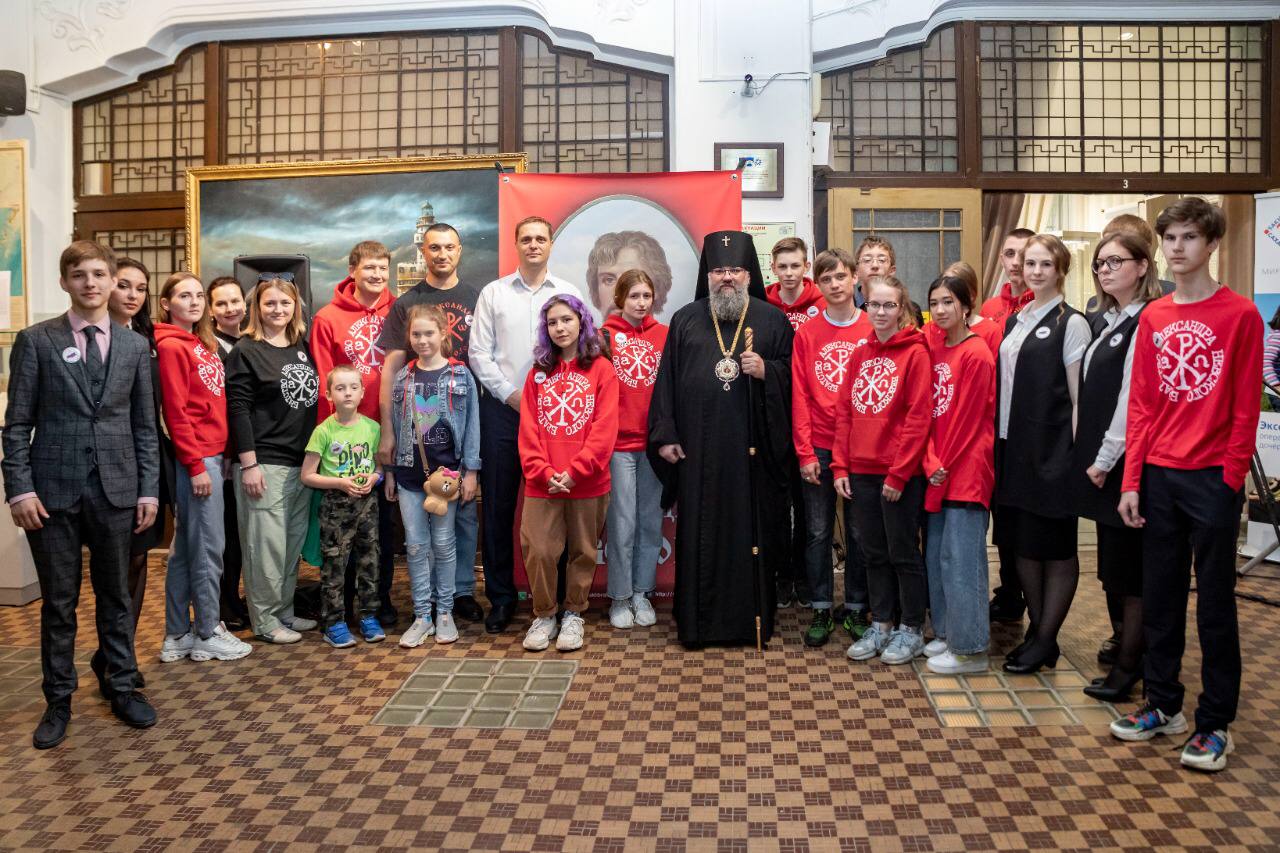 Перед началом открытия выставки малый состав хора храма Святителя Иннокентия Московского в Южно-Сахалинске исполнил несколько церковных песнопений посвящённых памяти благоверного князя Александра Невского.