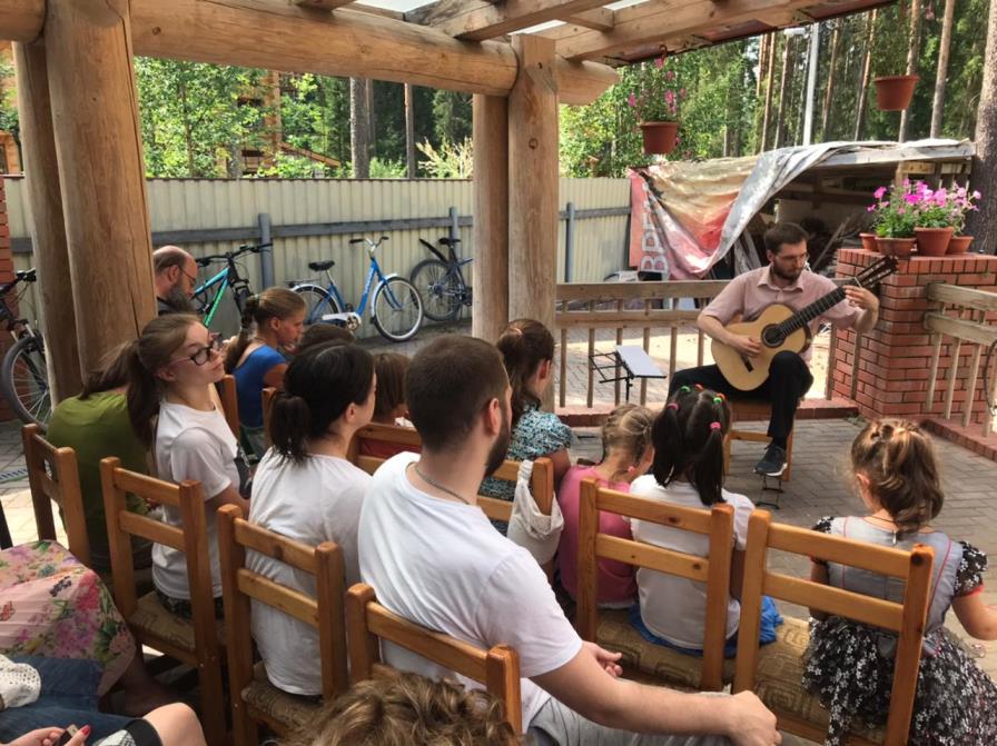 «После совместной молитвы за Божественной Литургией, совершенной в Казанском храме с духовником миссии иеромонахом Мефодием (Зинковским) гости проследовали в здание Миссии, где их ждал руководитель координационного центра по работе с детьми, оставшимся без попечения родителей, при ОЦБСС Санкт-Петербургской епархии иерей Феодосий Амбарцумов с воспитанниками. – рассказали в Отделе. - Перед собравшимися выступил лауреат международных конкурсов Дмитрий Соколов, который рассказал о русской семиструнной гитаре и исполнил импровизированный концерт. Все желающие смогли и попробовать поучиться "играть на гитаре"!