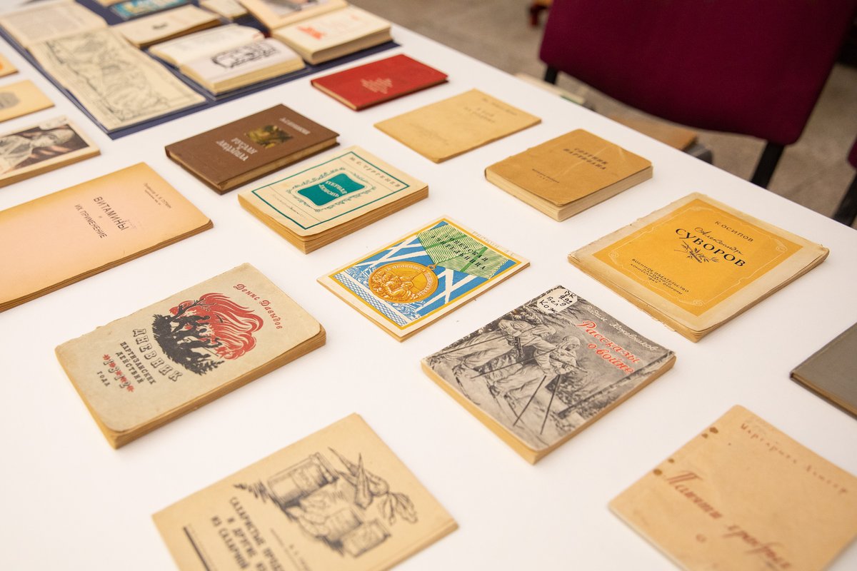 Также среди печатных раритетов — «Справочник командира инженерных войск», издание «Советская молодёжь в Отечественной войне», книга карманного формата «Суворов. Искусство воевать», детские книжки-малышки и другие редкие издания. О подвиге северной столицы в военные годы расскажут журналы «Ленинград» 1944 года и книга «Ленинград, дважды орденоносный», в которой собраны обращения Владимира Ленина 1918-1922-е годов, постановления о присуждении орденов бойцам и офицерам Красной армии за 1944-1945 гг., различные телеграммы и обращения.