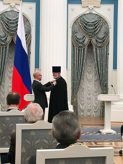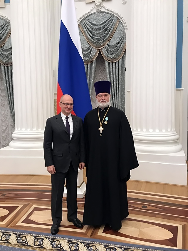 12 декабря, в День Конституции Российской Федерации, в Екатерининском зале Кремля, по поручению президента России Владимира Владимировича Путина были вручены государственные награды. Церемонию провёл первый заместитель Руководителя Администрации президента Сергей Владиленович Кириенко, сообщает Миссионерский Отдел Новосибирской епархии.