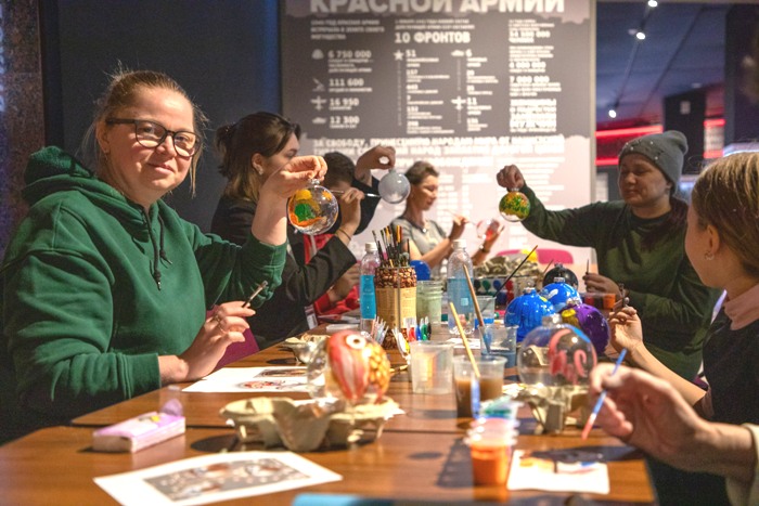 В четверг, 14 декабря, в Музее Победы состоялся благотворительный мастер-класс по росписи елочных игрушек. Занятие было бесплатно для посетителей музея. Все новогодние украшения, созданные взрослыми и детьми, будут переданы ребятам из медико-социального учреждения, сообщает пресс-служба Музея.