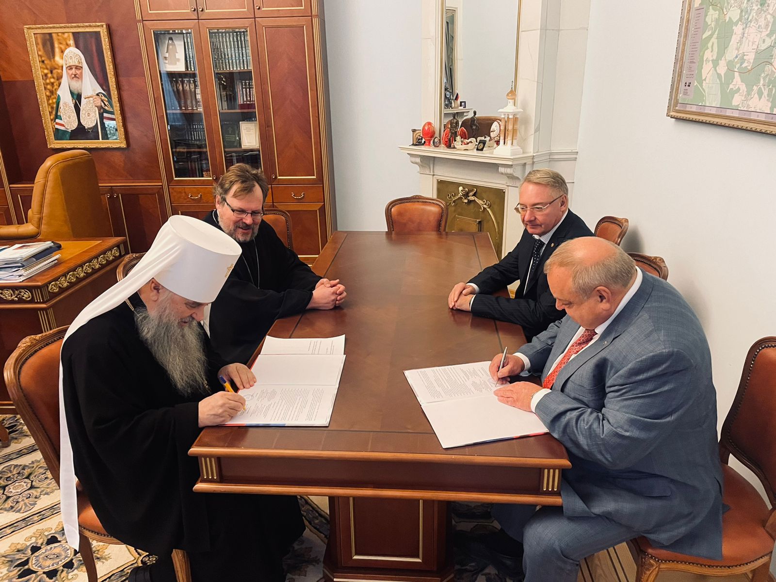Соглашение подписали, со стороны епархии – управляющий епархией, митрополит Санкт-Петербургский и Ладожский Варсонофий, со стороны Санкт-Петербургского регионального отделения ОГО «Ассамблея народов России» – Валерий Михеев, который одновременно является ректором Российского государственного гидрометеорологического университета.