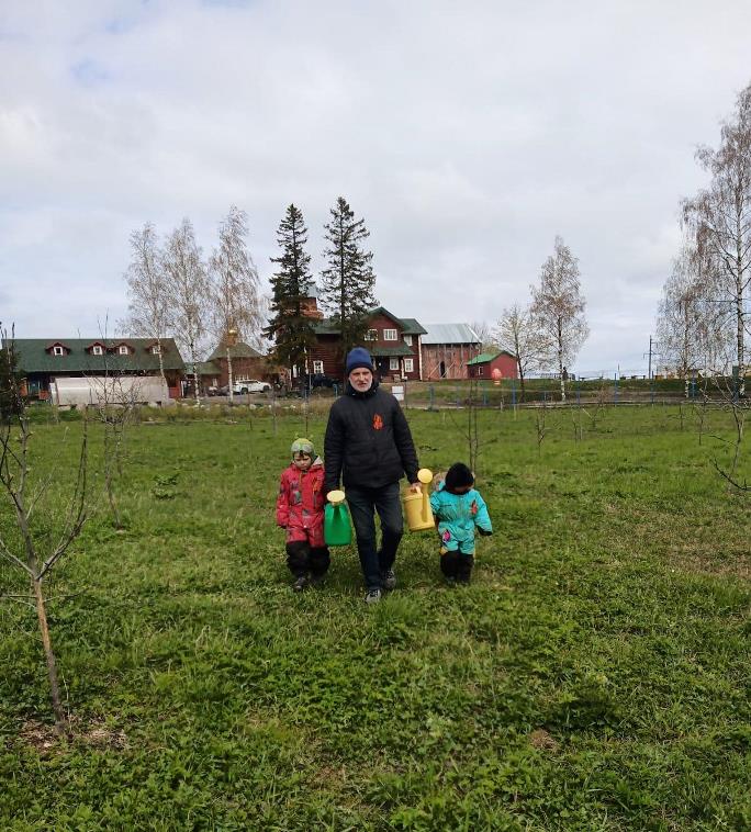 По окончании посадки начальник скита о. Даниил взыскательно осмотрел и принял выполненную работу.
