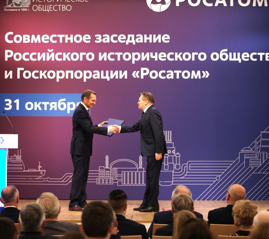 31 октября директор Службы внешней разведки России, председатель Российского исторического общества Сергей Нарышкин передал гендиректору «Росатома» Алексею Лихачеву новые рассекреченные архивные документы СВР об истории атомного проекта СССР, сообщила «Русской народной линии» пресс-служба НИЯУ МИФИ.
