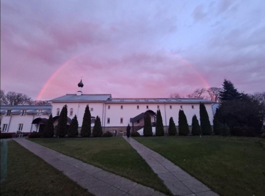 Как сообщают в группе ВКонтакте, «когда тело батюшки привезли в Снетогорский монастырь, появилась радуга без дождя».