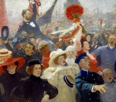 «Октябрьский манифест» запечатлен в известной картине И.Е. Репина. Вот как о ней писал сам автор: «Картина