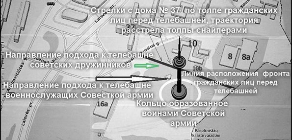 Схема расположения противостоящих сторон ночью 13 января 1991 г. у Вильнюсской телебашни.